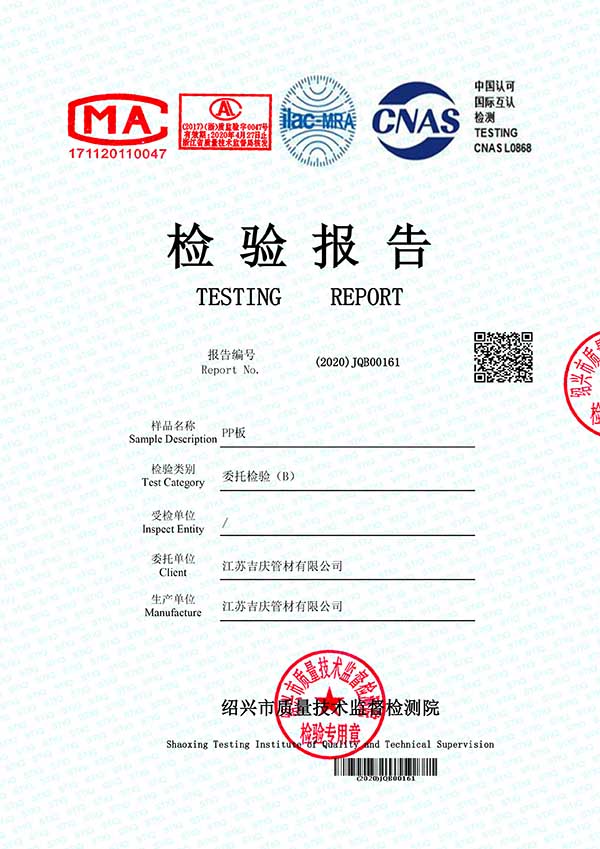 江蘇吉慶管材集團(tuán)有限公司創(chuàng)辦于2010年2月,是pp管,pp管材,pp管件,pp風(fēng)管,frpp管,frpp管材,pph管,pph管材,pph管件,pph風(fēng)管,pvdf管,pvdf管材,pp儲罐,pp板材的專業(yè)化生產(chǎn)企業(yè)。公司占地30余畝,擁有各類資產(chǎn)8000余萬元,專業(yè)技術(shù)人員20余人,管材生產(chǎn)線10條,管件生產(chǎn)線11條,具備了10000余噸各類防腐塑料制品的年生產(chǎn)能力。公司通過了ISO9001-2000質(zhì)量體系認(rèn)證,同時被評為AAA信用單位,2018年公司被評為高新技術(shù)企業(yè),此后陸續(xù)取得安全生產(chǎn)管理證書等榮譽。公司位于水上花園城市----江蘇省揚中市八橋鎮(zhèn)永福路18號,交通便捷,可直接導(dǎo)航至公司園區(qū)內(nèi)。公司全體員工將以高度的敬業(yè)精神,嚴(yán)格的質(zhì)量控制理念和科學(xué)的管理方法,及時周到的服務(wù),竭力為我國塑料管道在各領(lǐng)域的推廣和應(yīng)用作出更大的貢獻(xiàn)!